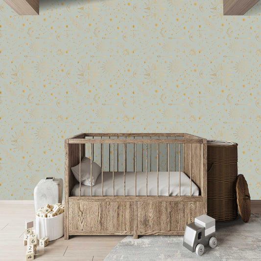 Wallpaper Shooting Stars Moons Sundials Childrens Bespoke Wallpaper