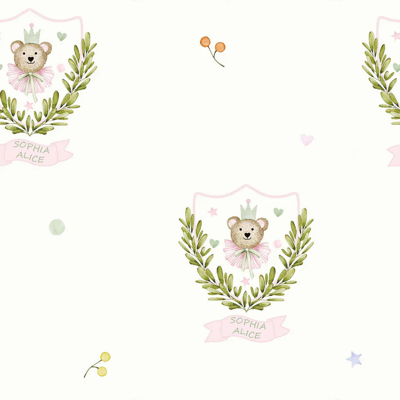 Introduce timeless charm to your child’s space with our Heritage Bear wallpaper. At the heart of this enchanting design is a regal bear, crowned with whimsy and surrounded by rich green foliage a modern take on a classic family crest, perfect for your little Prince or Princess.